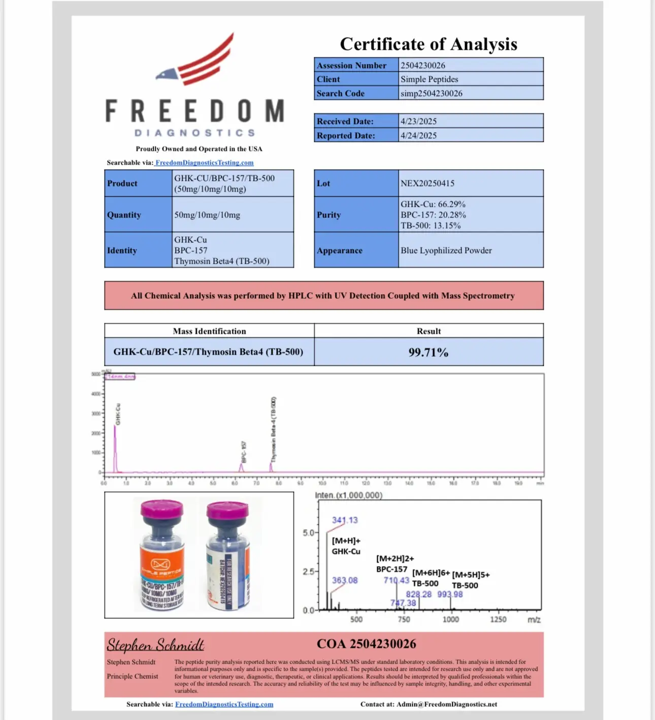 Simple Peptide is a chemical supplier. Simple Peptide is not a compounding pharmacy or chemical compounding facility as defined under 503A of the Federal Food, Drug, and Cosmetic Act. Simple Peptide not an outsourcing facility as defined under 503B of the Federal Food, Drug, and Cosmetic Act.