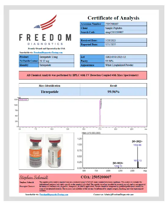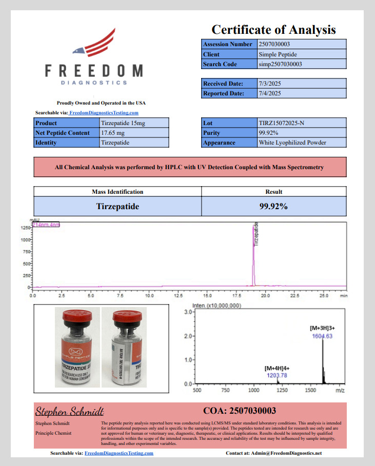 GLP-2Tz is a GLP-1 and GIP receptor dual agonist designed to offer a comprehensive approach to metabolic health. Please see the attached COA and be aware that our GLP-2T 15MG is actually testing at 18MG