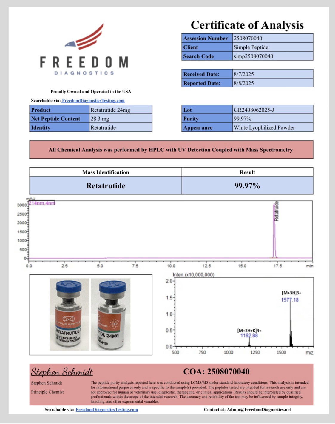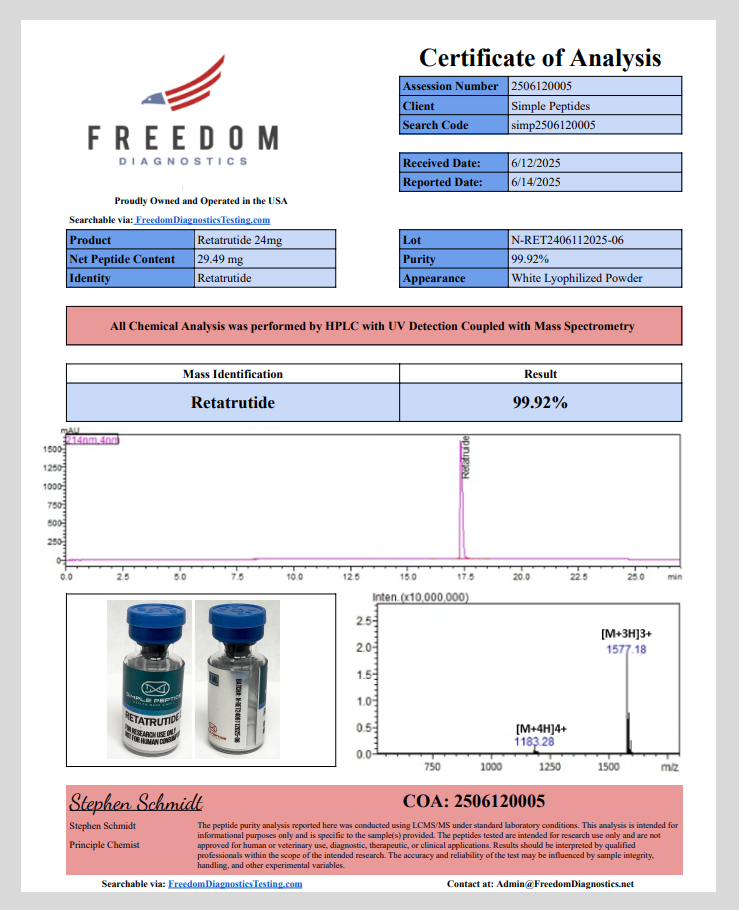 Simple Peptide is a chemical supplier. Simple Peptide is not a compounding pharmacy or chemical compounding facility as defined under 503A of the Federal Food, Drug, and Cosmetic Act. Simple Peptide not an outsourcing facility as defined under 503B of the Federal Food, Drug, and Cosmetic Act.