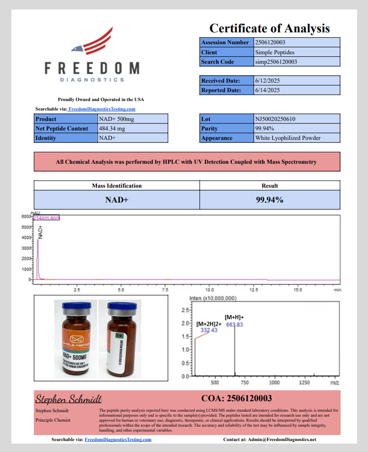 Simple Peptide is a chemical supplier. Simple Peptide is not a compounding pharmacy or chemical compounding facility as defined under 503A of the Federal Food, Drug, and Cosmetic Act. Simple Peptide not an outsourcing facility as defined under 503B of the Federal Food, Drug, and Cosmetic Act.